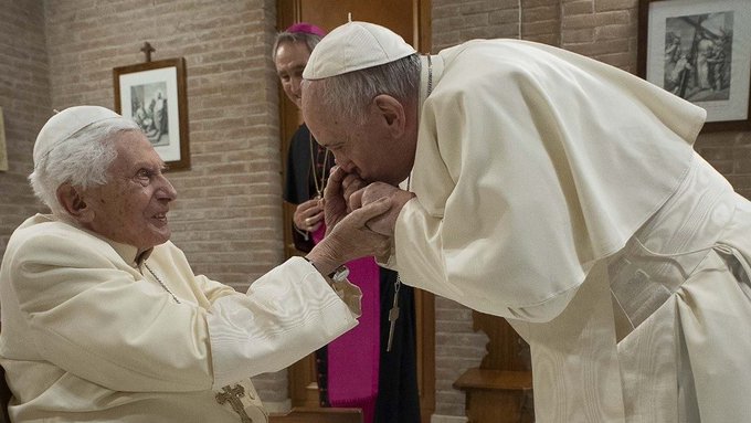 Como já virou tradição no pontificado de Francisco, após a criação de novos cardeais, ele os leva para visitar o Papa Emérito Bento XVI, que vive em um pequeno mosteiro no Vaticano.